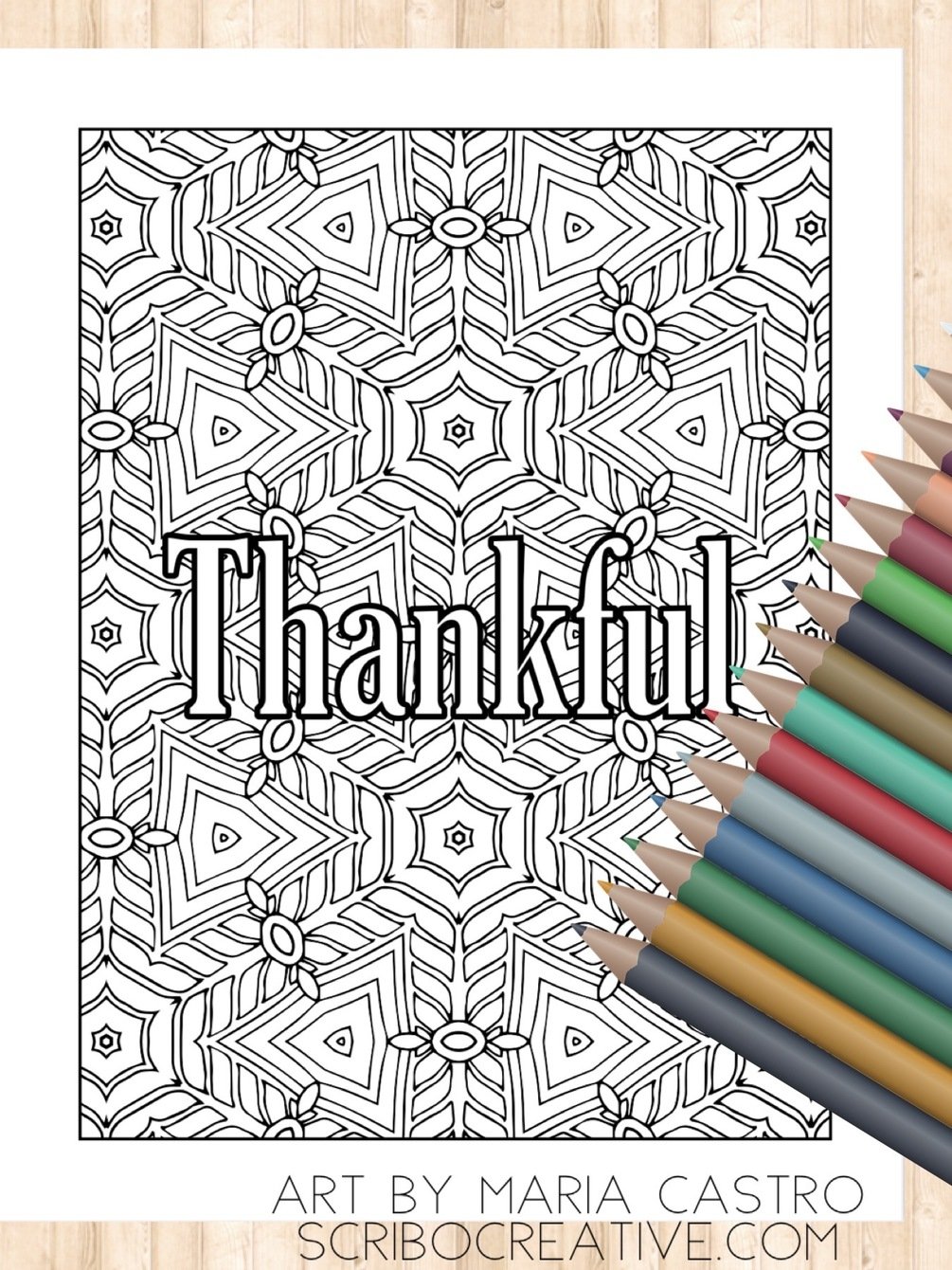 Thankful, Positive Words coloring page by Color My Moods, Art by Maria Castro of ScriboCreative.com5.0(2)
