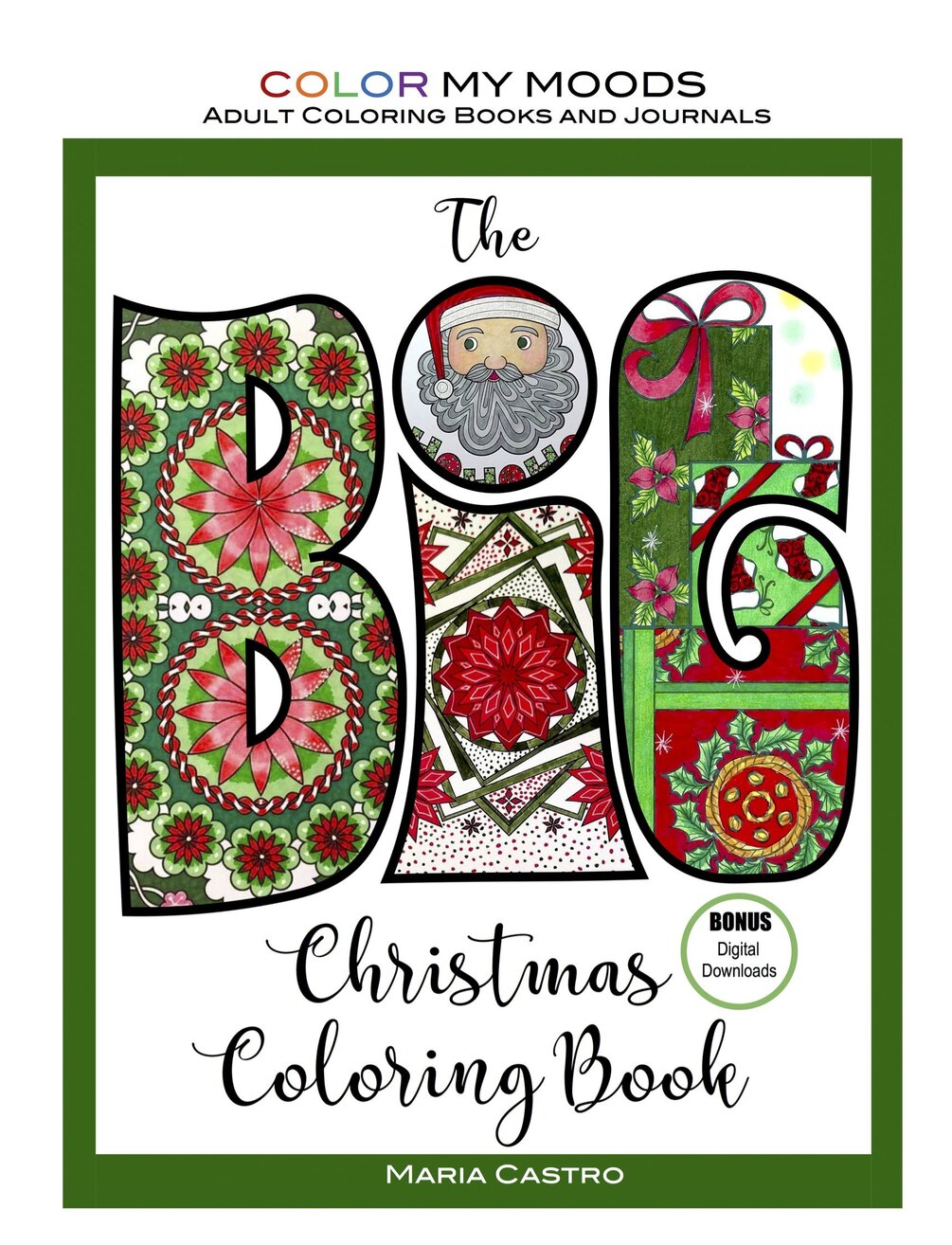 This festive coloring book has a huge variety of lovely drawings, including a nativity scene, gifts, Christmas tree, angel, Santa, stockings, a snowman, snowflakes, stars, gingerbread, ornaments, bells, seasonal mandalas and patterns, fun sayings, and more!
