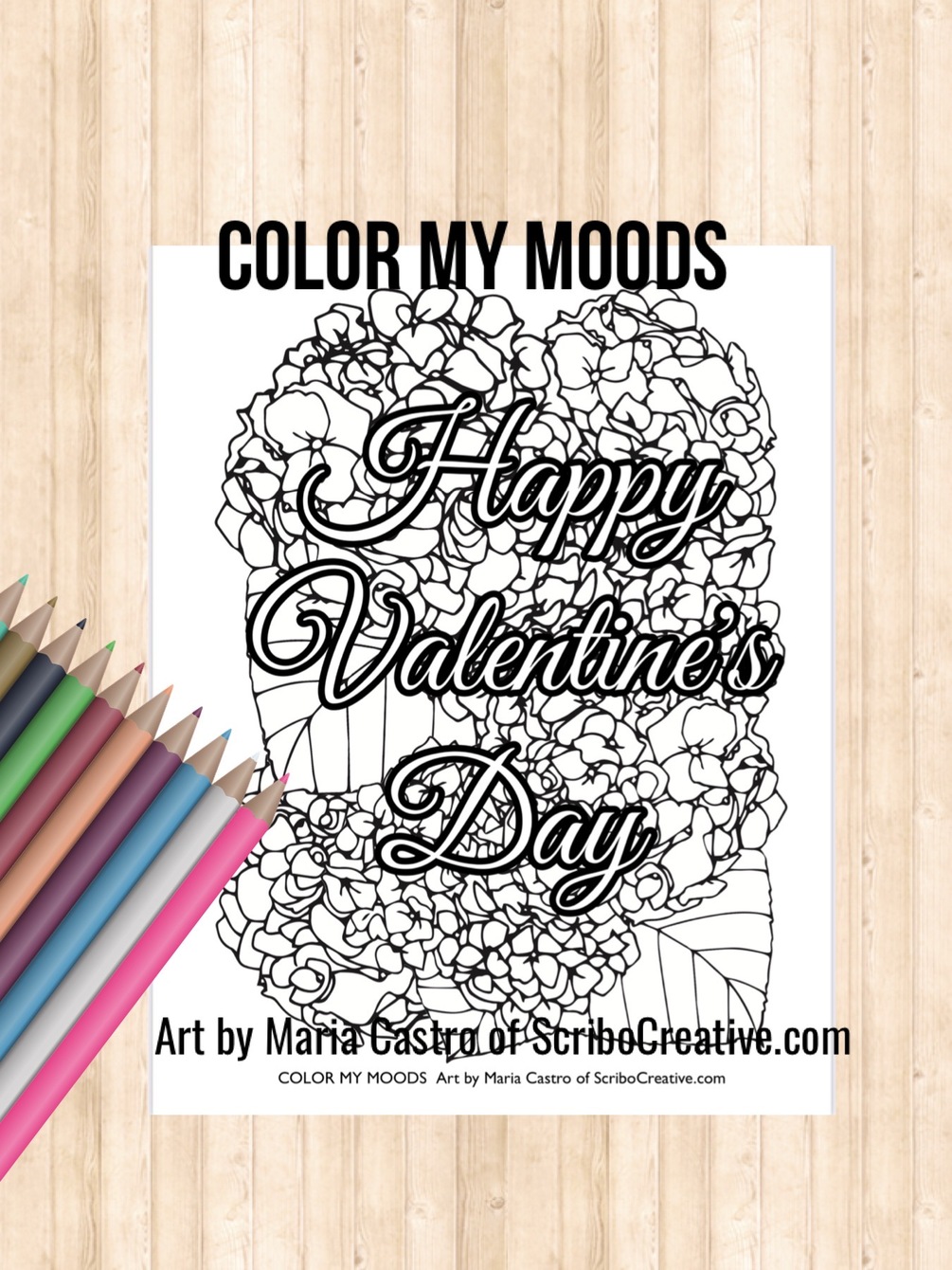 Happy Valentine's Day coloring page - Art by Maria Castro of ScriboCreative.com