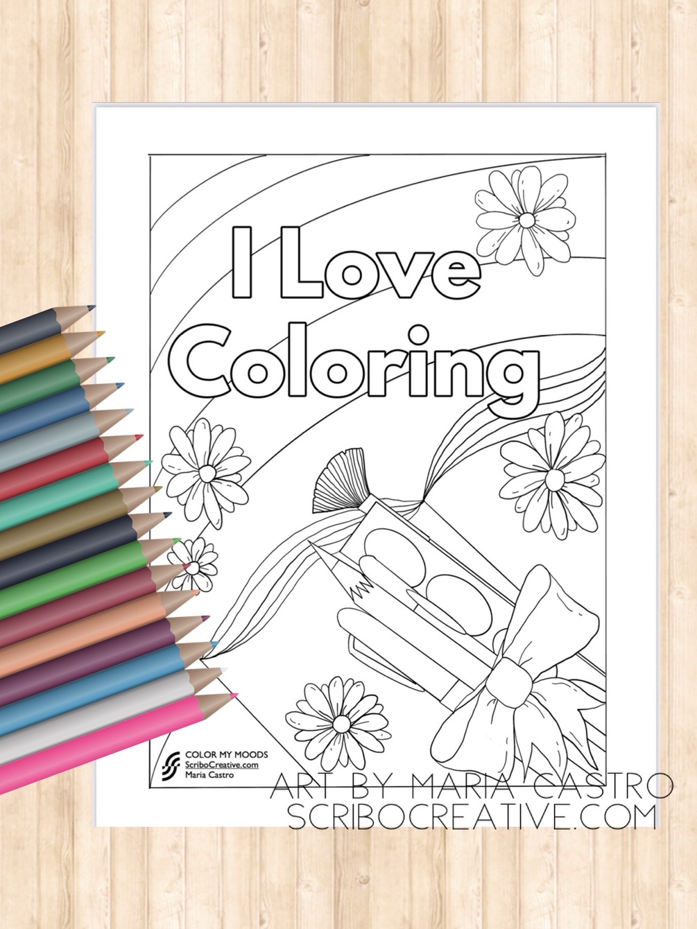 I Love Coloring coloring page printable by Maria Castro of ScriboCreative.com