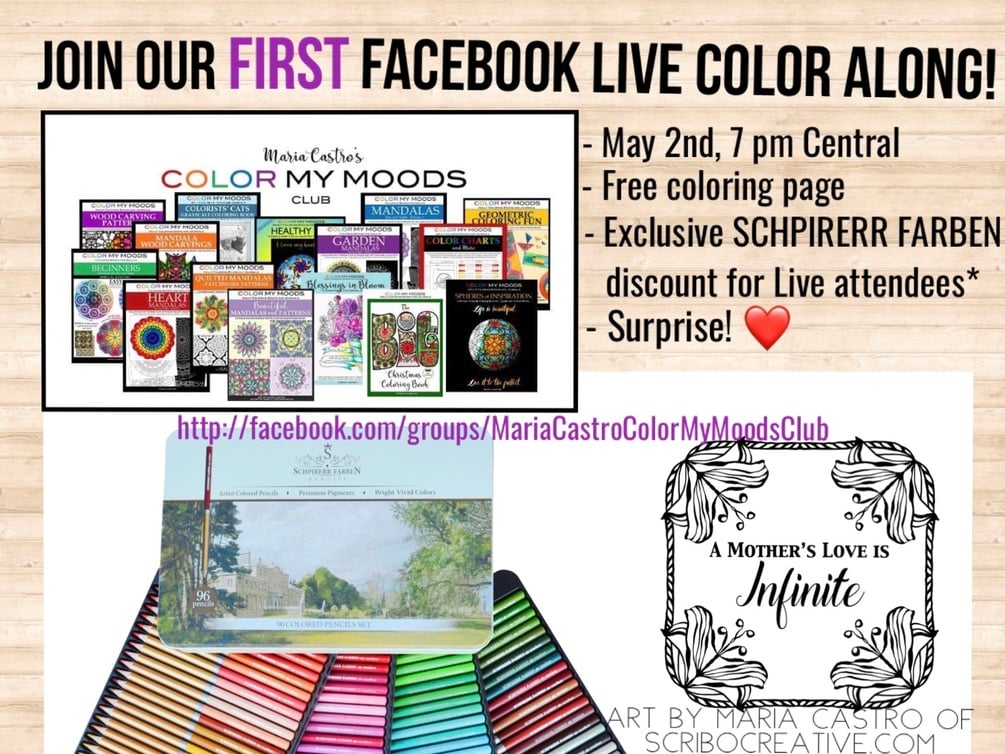 Join our first Facebook LIVE Color Along in our new Facebook Group: facebook.com/groups/MariaCastroColorMyMoodsClub and get this coloring page for free. Perfect for Mother's Day.